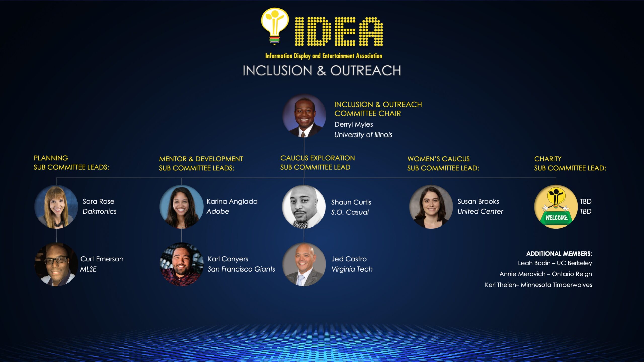 The Inclusion & Outreach Committee (I&O) conducts management sessions at the annual conference concerning issues of inclusion, offers an outreach program for students to introduce them to the industry and oversees the mentorship program. The Committee also oversees IDEA’s robust mentoring program. To get involved contact Derryl Myles.